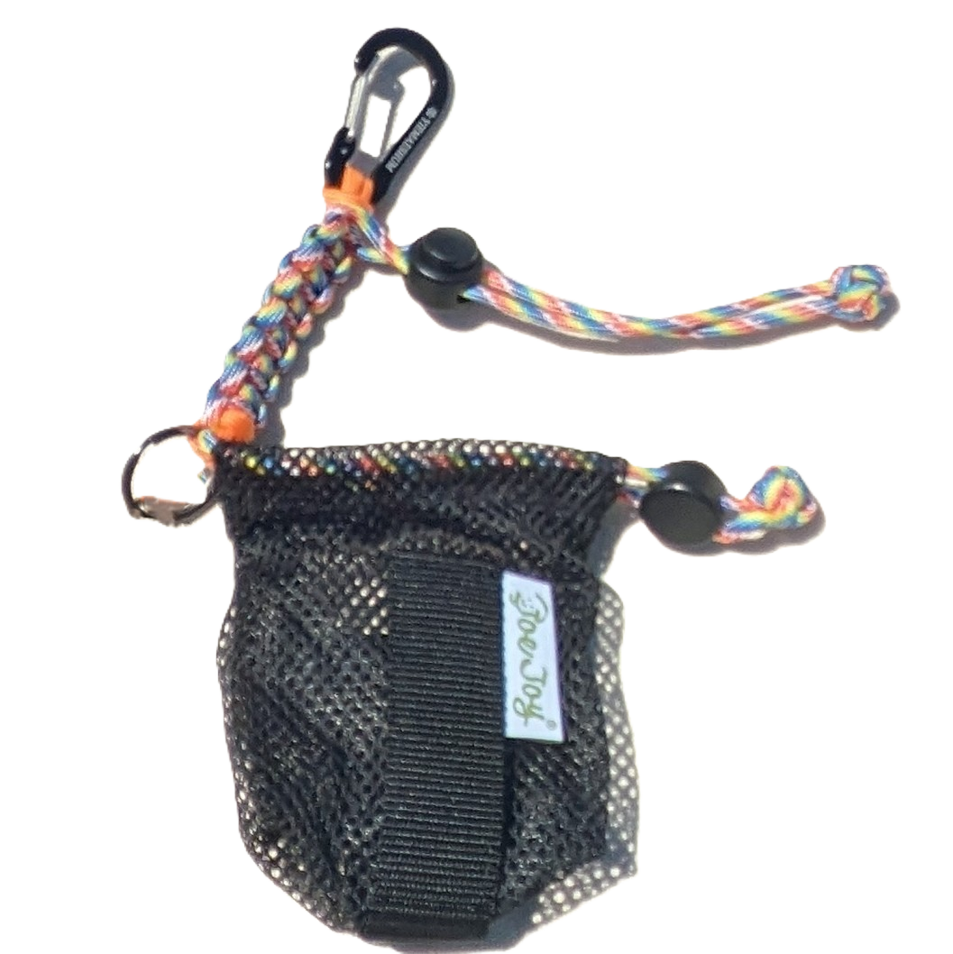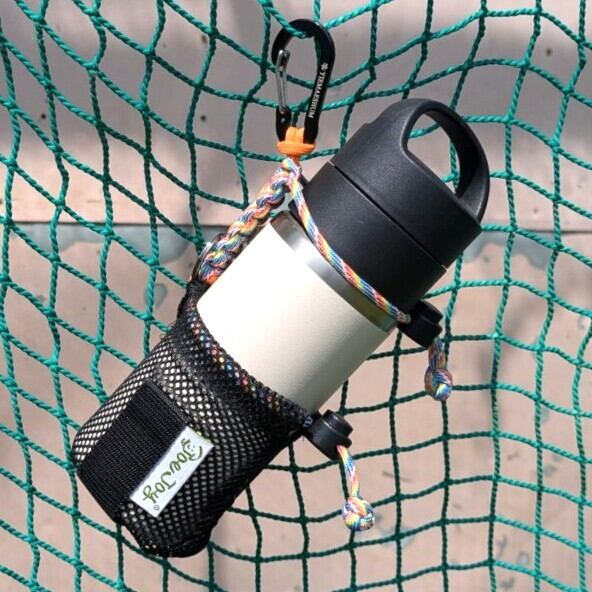 カラフルなパラシュートコードとメッシュ生地の巾着を組み合わせた、